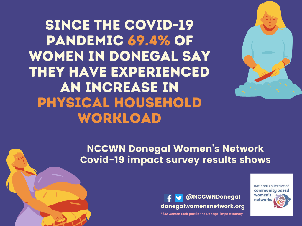 As a grassroots women’s organisation NCCWN Donegal Women’s Network recognised early that women in Donegal will face unique experiences, challenges and impacts during the pandemic because of their gender. We believe it is important women in Donegal have their lived experiences through the Covid-19 pandemic documented, recognised and acknowledged. And that women’s experiences and voices are acknowledged within any local and national post Covid-19 recovery strategy and that decision-making bodies recognise the particular experiences of women’s lives in society and tailor any recovery budgets, policies, plans and programmes accordingly.